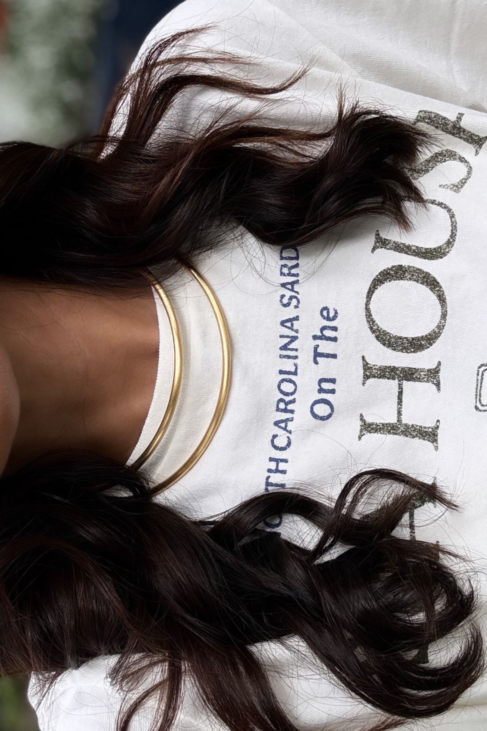 Aro duplo com acabamento escovado, moderno e sofisticado, ideal para compor produções elegantes no dia a dia.
