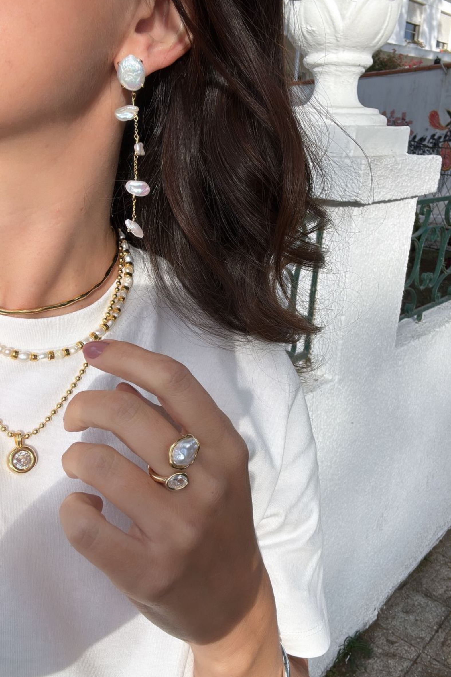 Design orgânico com pérolas, para quem valoriza peças únicas e cheias de personalidade.