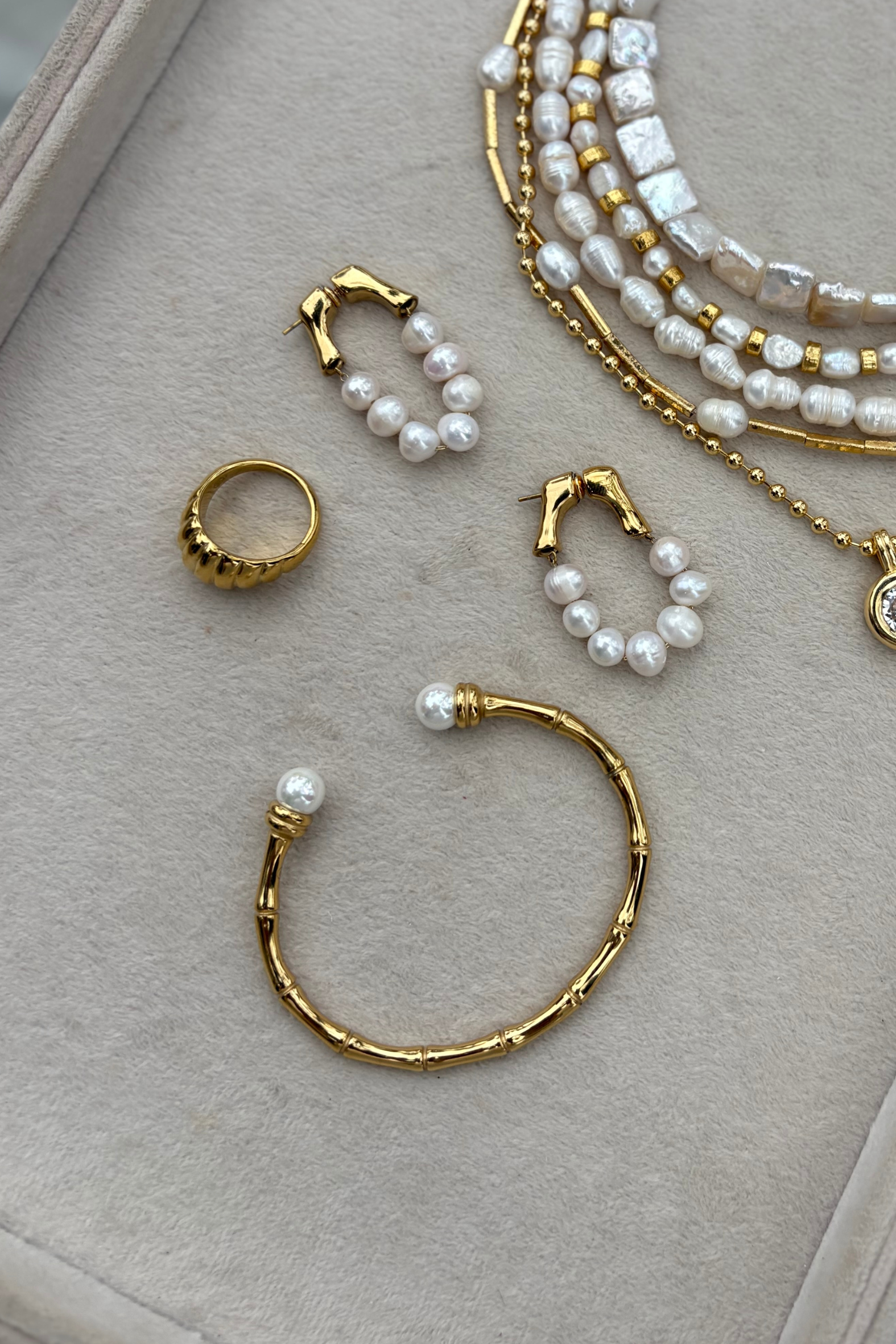 Uma seleção atemporal que une elegância e delicadeza. As pérolas trazem um brilho sutil e sofisticado, realçando qualquer produção com seu charme clássico e versátil. Uma composição perfeita para quem busca equilíbrio entre o tradicional e o contemporâneo.