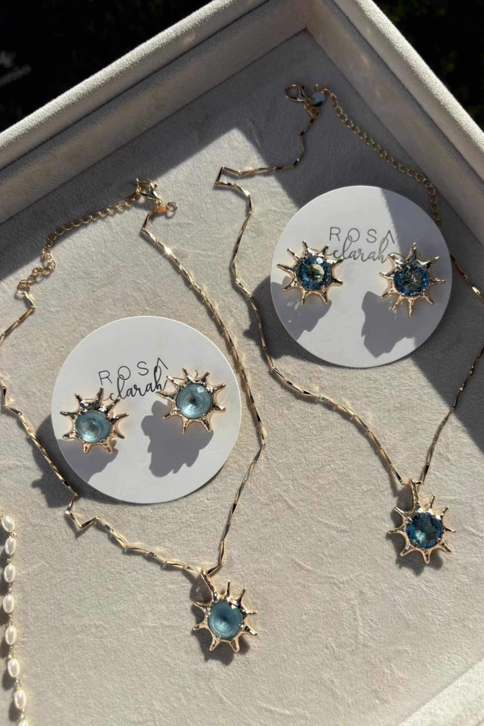 Uma composição iluminada e sofisticada, que une a simbologia do sol ao brilho delicado do cristal. As peças se harmonizam criando um visual radiante, elegante e cheio de personalidade, ideal para quem busca acessórios que trazem luz, charme e versatilidade ao look.